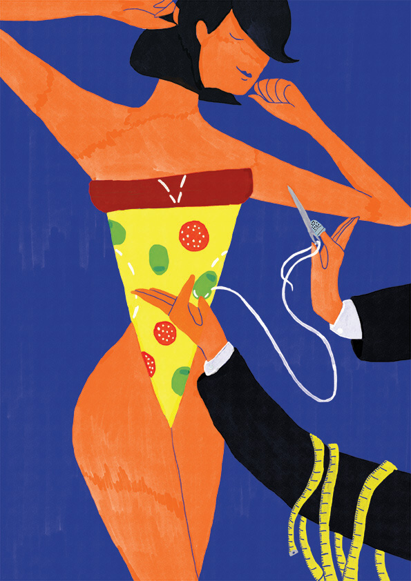 I come from Ferrara, a city near Bologna (Italy). During my childhood I travelled a lot in the north of Italy. I really like travel because you can meet different people, and experience new cultures and places as well. I’ve noticed I often use food (along many other things) in my illustrations, such as pizza, coffee, but also English breakfast, tea and so on… So yes, I think my experiences with food but also sports and games inspire me. Sometimes I don’t realise it instantly, but it hits me a few days later when I’ve actually already finished the illustration.