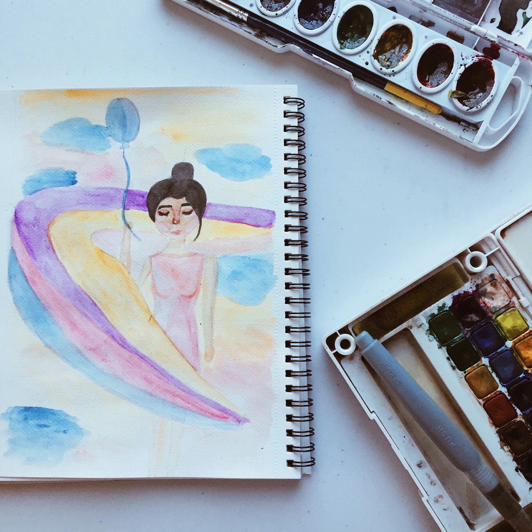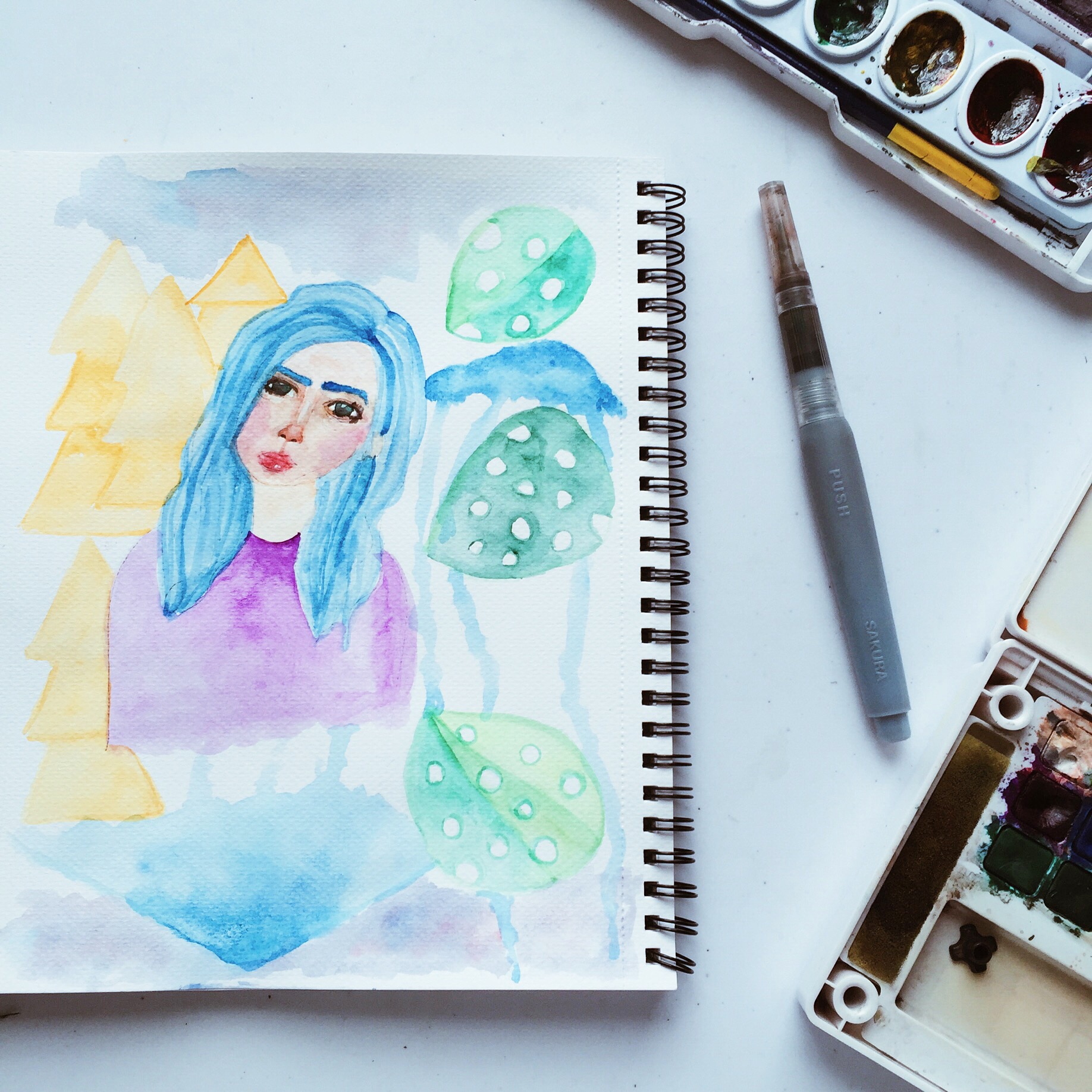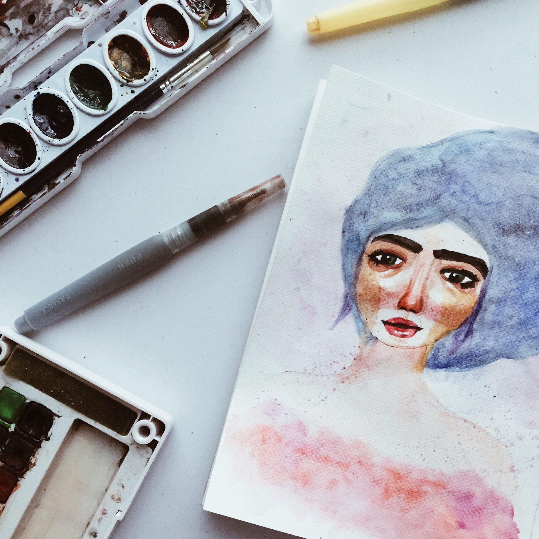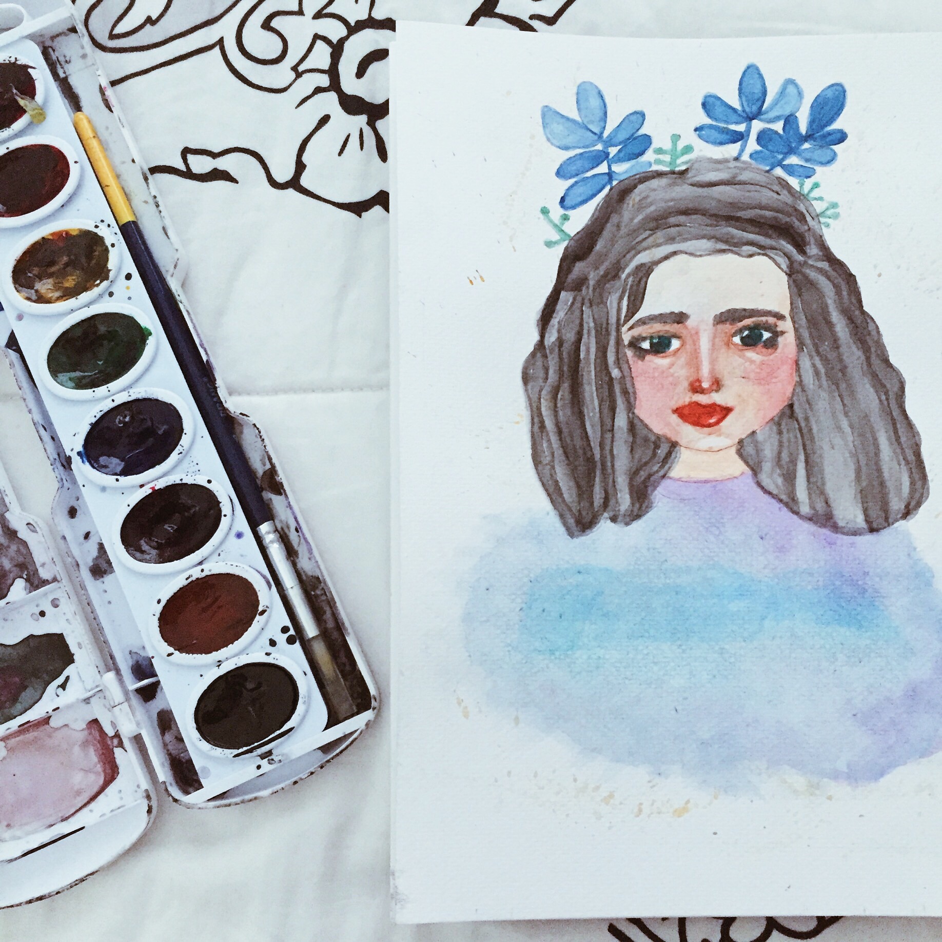 I really love the medium of watercolor. I don’t know, it’s just something about it that just excites me. I think that it’s beautiful how the color stains on the paper or how free the colors just flow, and it’s like a burst of beauty when you mix them together. Watercolor is such a vast medium and it’s almost like the possibilities are endless with it.