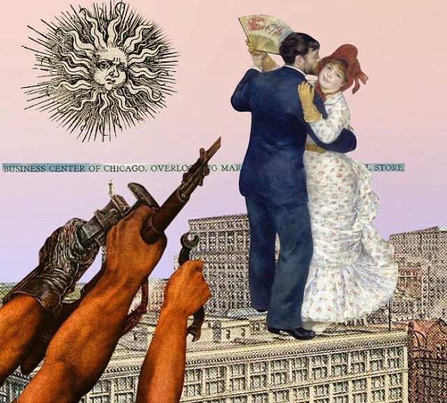 My favourite medium is collage; I think compared to any other medium that I’ve attempted to work with, I’m always drawn back to the fundamentals and impact of collage. It’s a very radical medium, and my politics are very radical, so I feel as though the two go hand in hand. There is a timelessness to collage; it’s a very modern medium that insinuates time and place, just as much as the politics behind it.