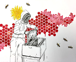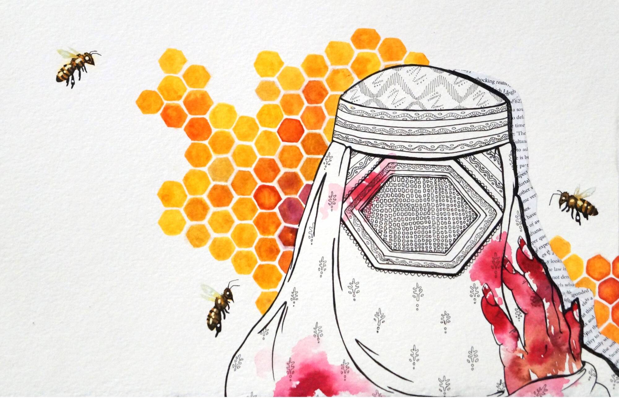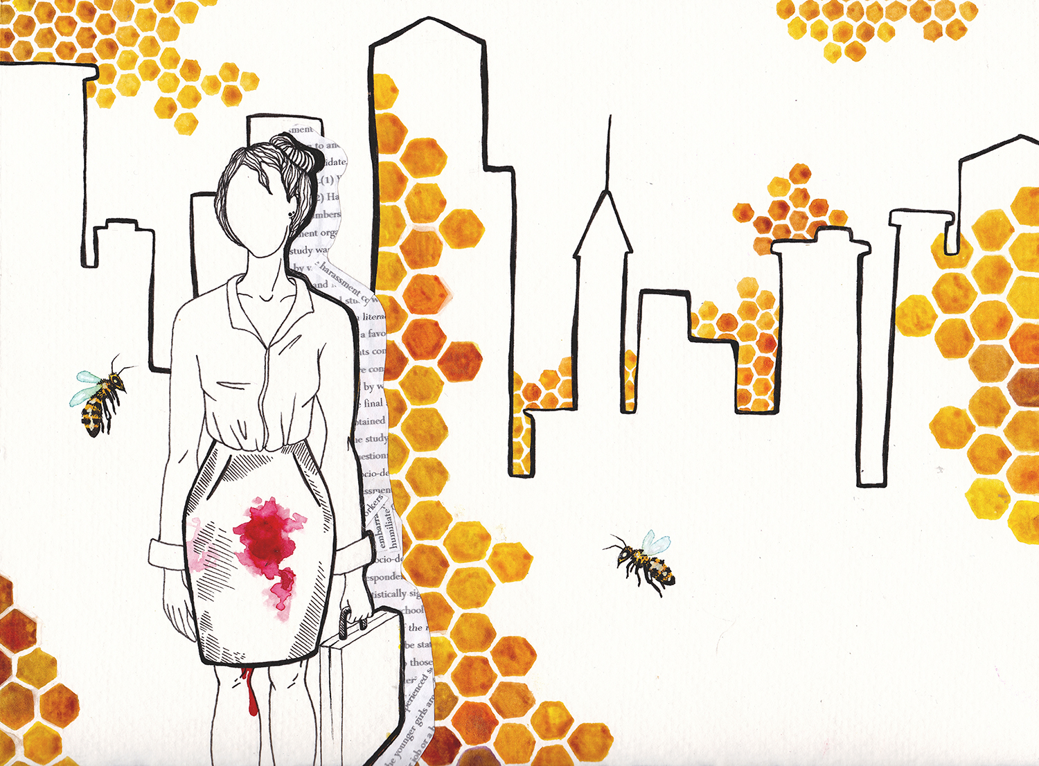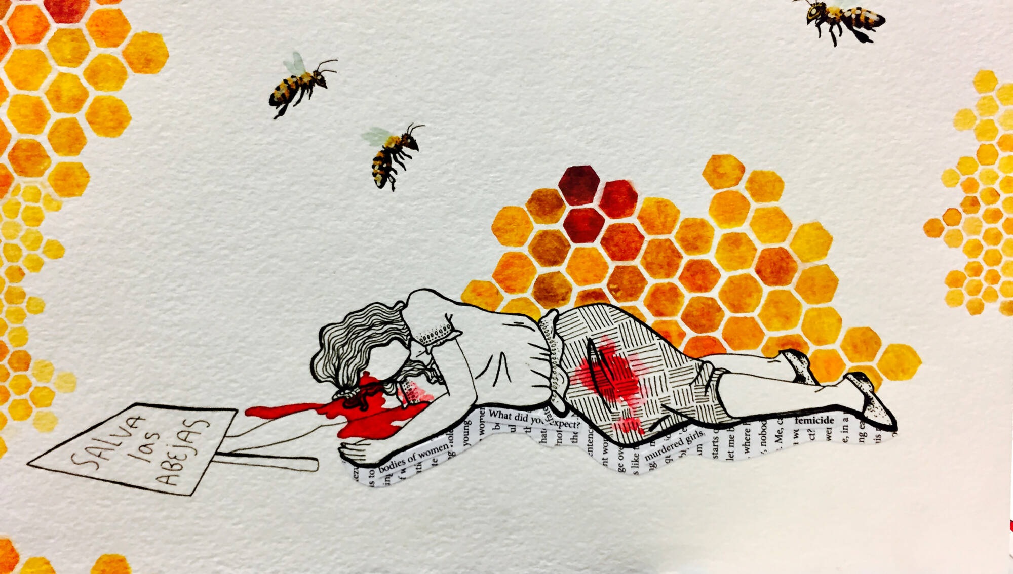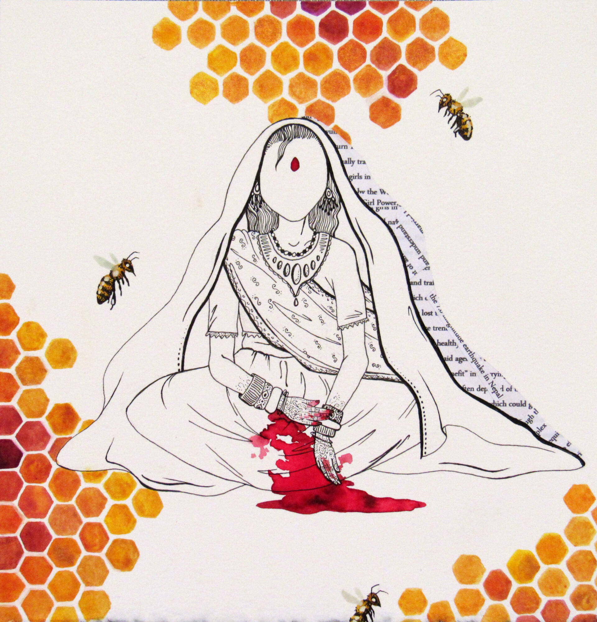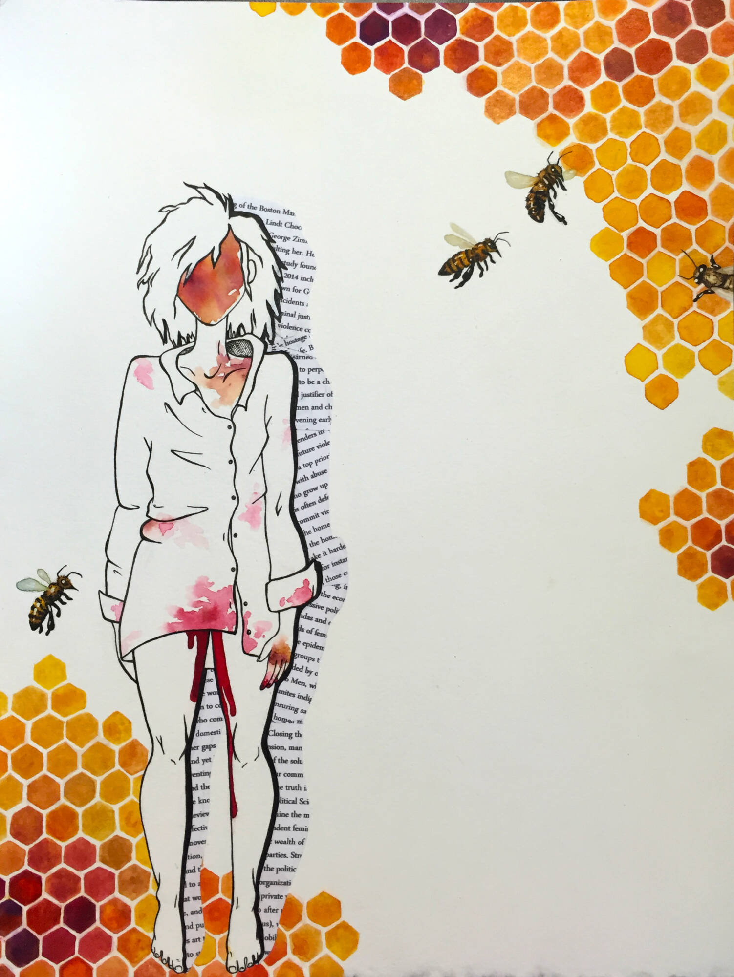 This concentration works to juxtapose the abuse of women and degradation of the environment with the strength of female menstruation and environmental resilience. I have been greatly influenced by my family’s bee hive and the immense strength the worker bees (all female) have despite the destruction of their land and immune systems. Women understand the earth in a deep way and the cyclical nature of the female spirit and body is prime example for the resilience and beauty within overcoming taboo and abuse.