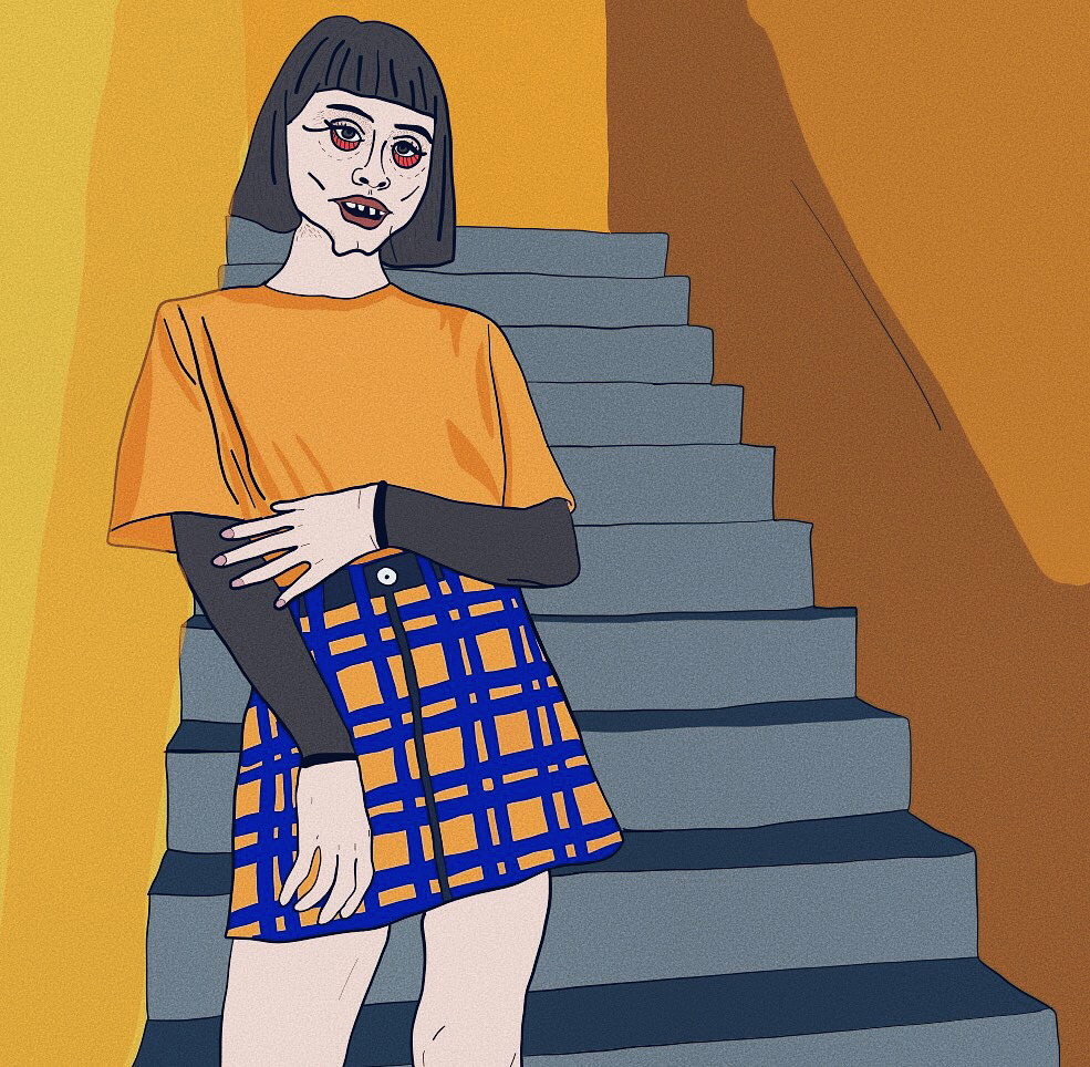 I absolutely love films, and there are several that have definitely influenced my work. I really love Wes Anderson movies because of the aesthetic they provide. I love the colors and the way the characters dress; visually these are some of my favorite films. However, movies that have had a deeper impact on me include Donnie Darko, The Virgin Suicides, Coraline, and American Beauty. All of these movies have a dark aspect to them, which really fascinates me. Every character is so intriguing to watch, and the plots are always very obscure. When I am not doing a commissioned portrait for someone, I like to add grungy tiny details to my own pieces.