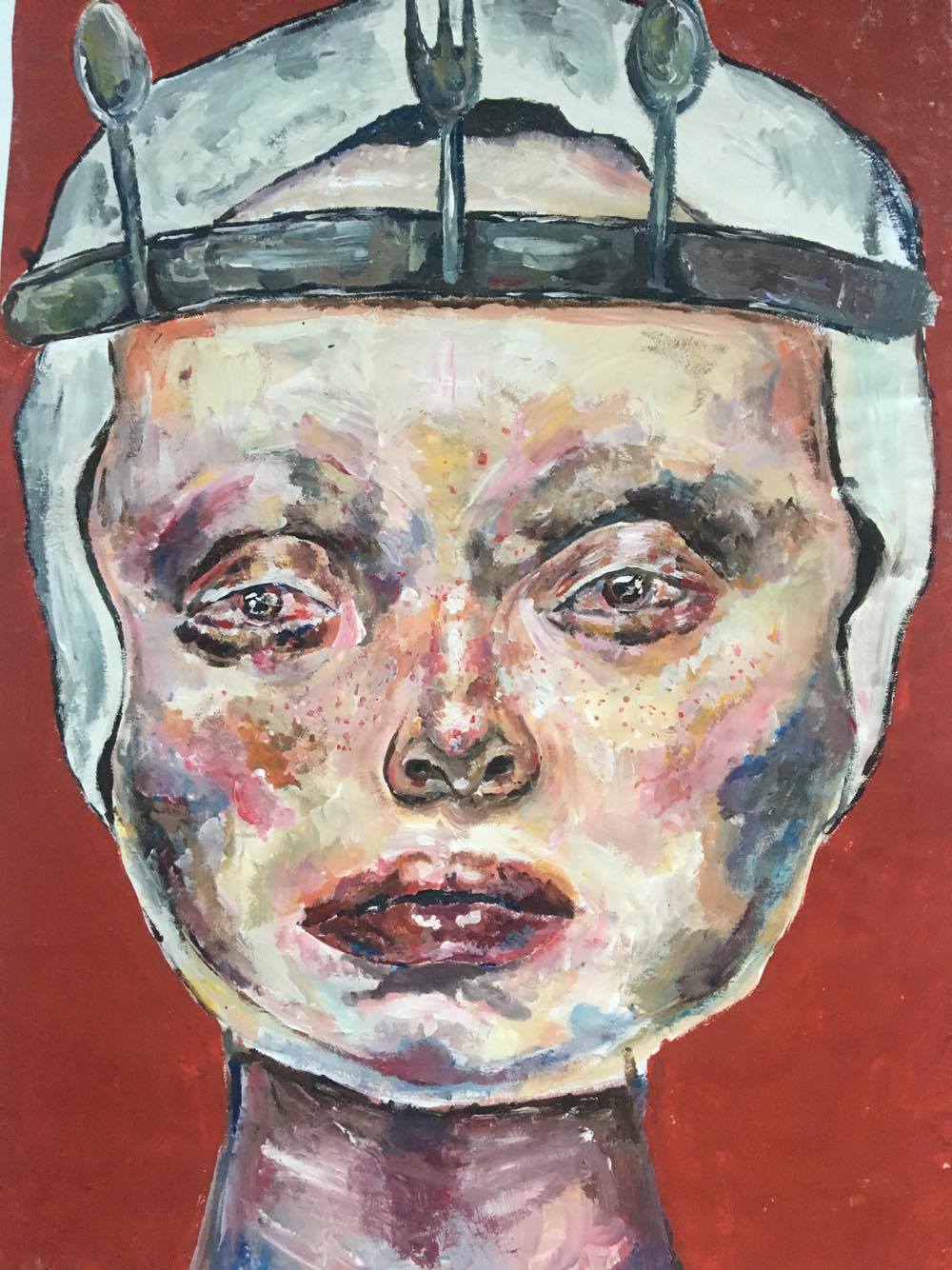 I like to express the meaning of being ‘unconventional’ in my paintings; I like painting people that don’t fit the normal standard of appearance, or act in really controversial ways. Donald Trump fucks me off a lot and as a young girl I want to let other gals know it’s okay to stand up for what you believe in, and what Trump stands for is not okay. Politics are kind of a taboo subject for teenagers, and adults kind of roll their eyes when a kid has something to say about it, because we’re thought of as uneducated a lot of the time. In my art, I really want to stress the importance of speaking up about it and not being afraid to have an opinion as a teenager.