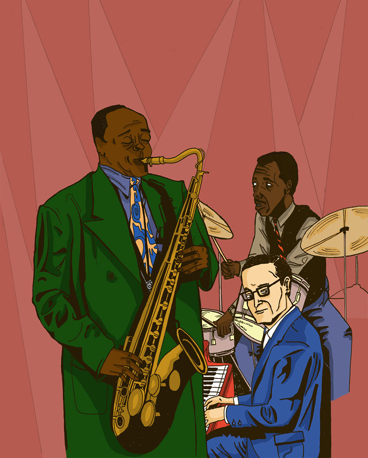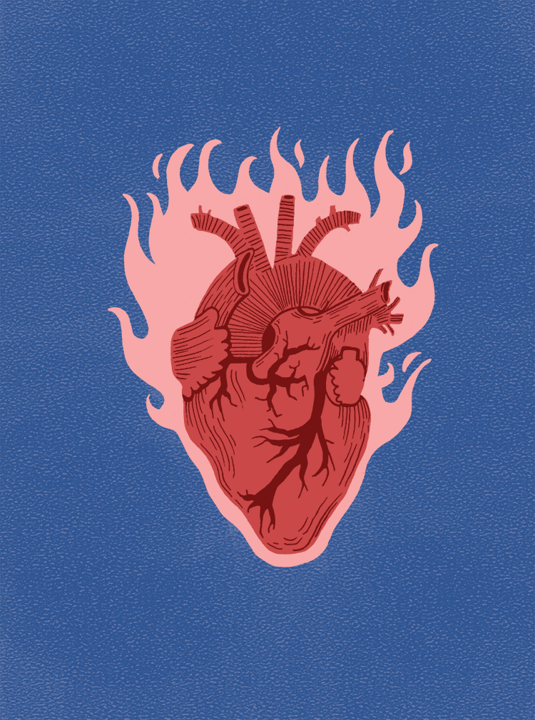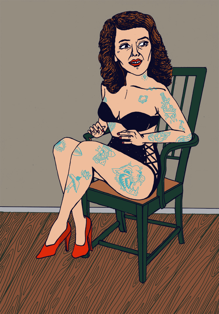 Usually, I will get ideas for illustrations when I’m just about to go to sleep or I am doing the food shop or something mundane like that. So I tend to keep a notebook on me or my phone and I will quickly note them down. Then I usually doodle in my sketchbook to visualise the idea. I use Bristol board for the final piece and draw it out in pencil and then ink it after, which works better for me. After I am happy with the drawing, I scan it into the computer and colour using Photoshop; more recently I have concentrated on using limited colour palettes. I tend to work on an illustration like a painting. I will continuously change colours throughout the drawing for a few days before I am happy and I will quite often take screenshots of my process which I find helps me.