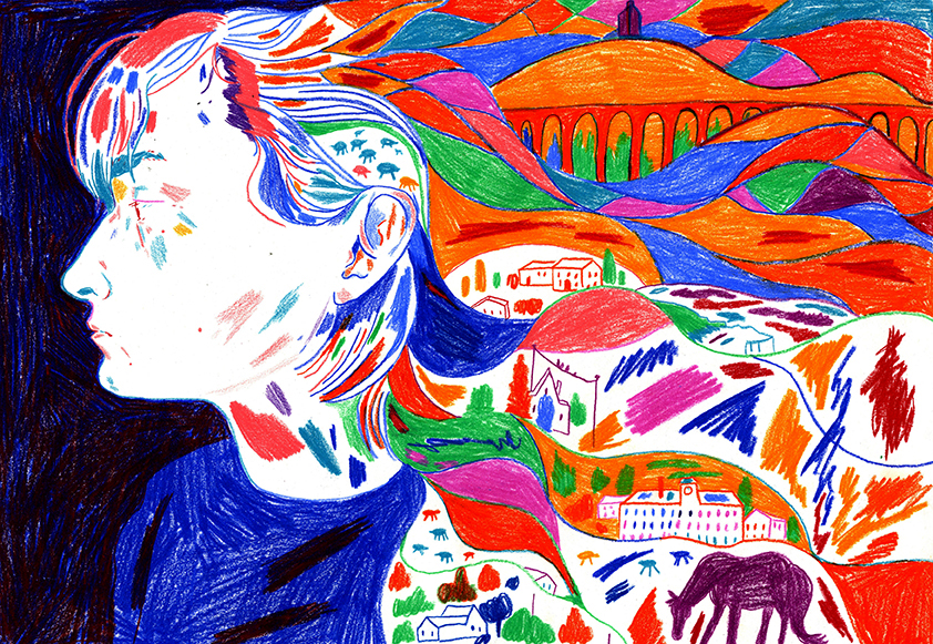 I tend to gravitate towards artists that aren’t working in illustration specifically, usually filmmakers and fine artists. This changes from month to month, but at the minute, David Hockney is a large inspiration to my work, especially his landscape paintings from around the Yorkshire landscape. The colours are what you’d associate with California, but not really colours you’d associate with a usually rainy, cold England, which is why I like the bold, ecstatic colours so much.