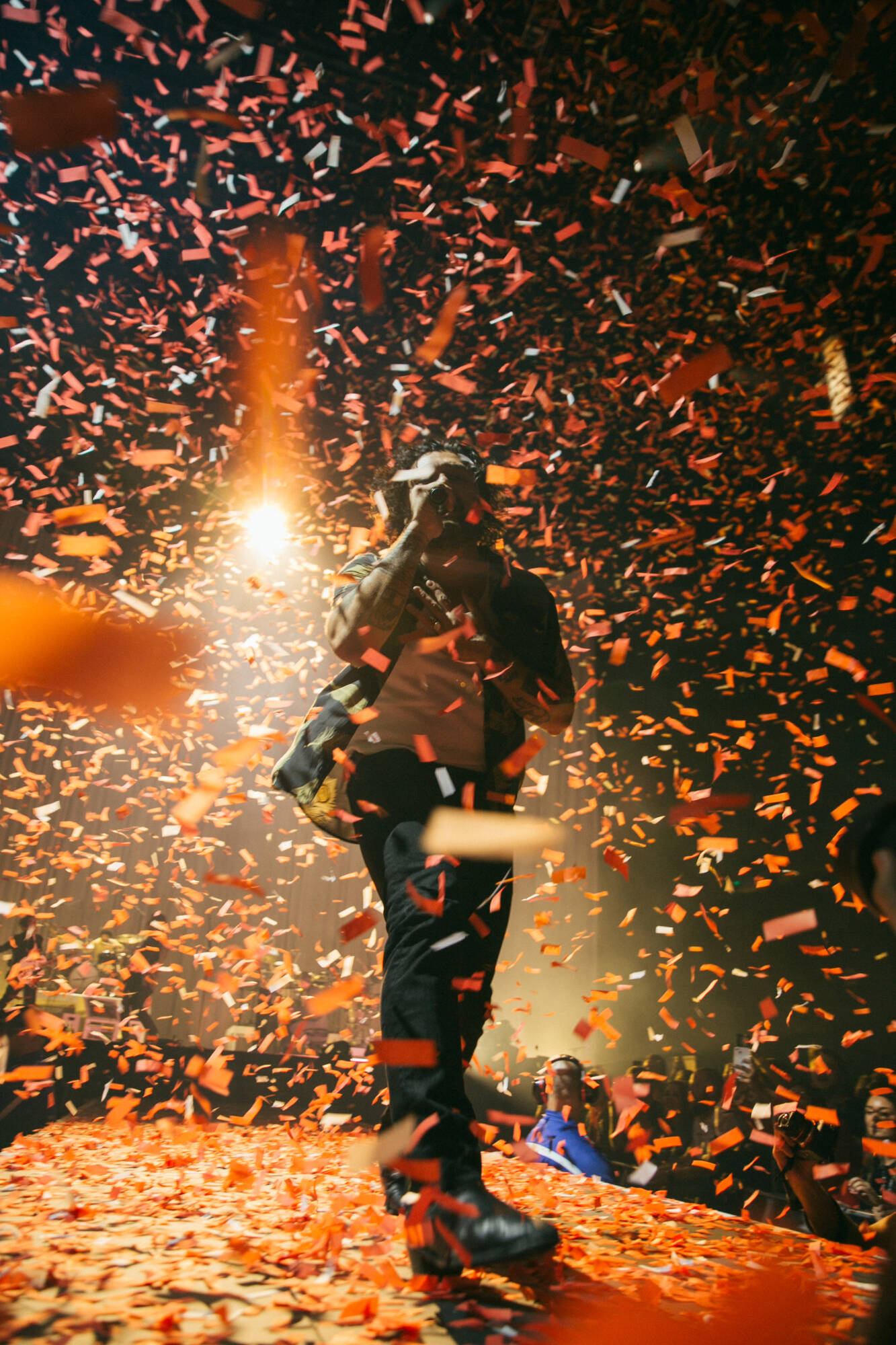 There are quieter moments interspersed with the set: being hoisted onto the shoulders of a friend while a stranger holds my hand. Being told by a disgruntled security guard to “get down,” because some people don’t like joy. The solidarity between myself and the girls next to me, all about 5’2 and blind to a world above our eyeline. The confetti that rained from the ceiling (and collected in my bra). The tears when Dave’s father – the album inspiration – is shown on screen at the close of the show. What you often lose in acoustics in a big cacophonous room, you gain in the special bond that only comes from a prodigious crowd agreeing upon what a good Saturday night is. Live music is a pretty resilient business after the past few years, and my god, save for the ever present risk of illness – it felt really damn good to be back in a crowded room.
