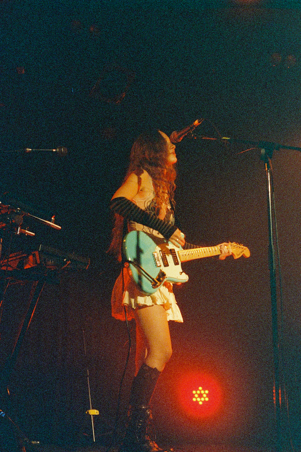 Her fear is unfounded, the crowd roars as she kicks off with Vanilla. Singing along to a blunt assessment of love that I wish I had heard when I was 20, “we go steady we just get by, we coast until we hit a red light,” the middle 8 breezes over a propulsive glitchy pop beat.