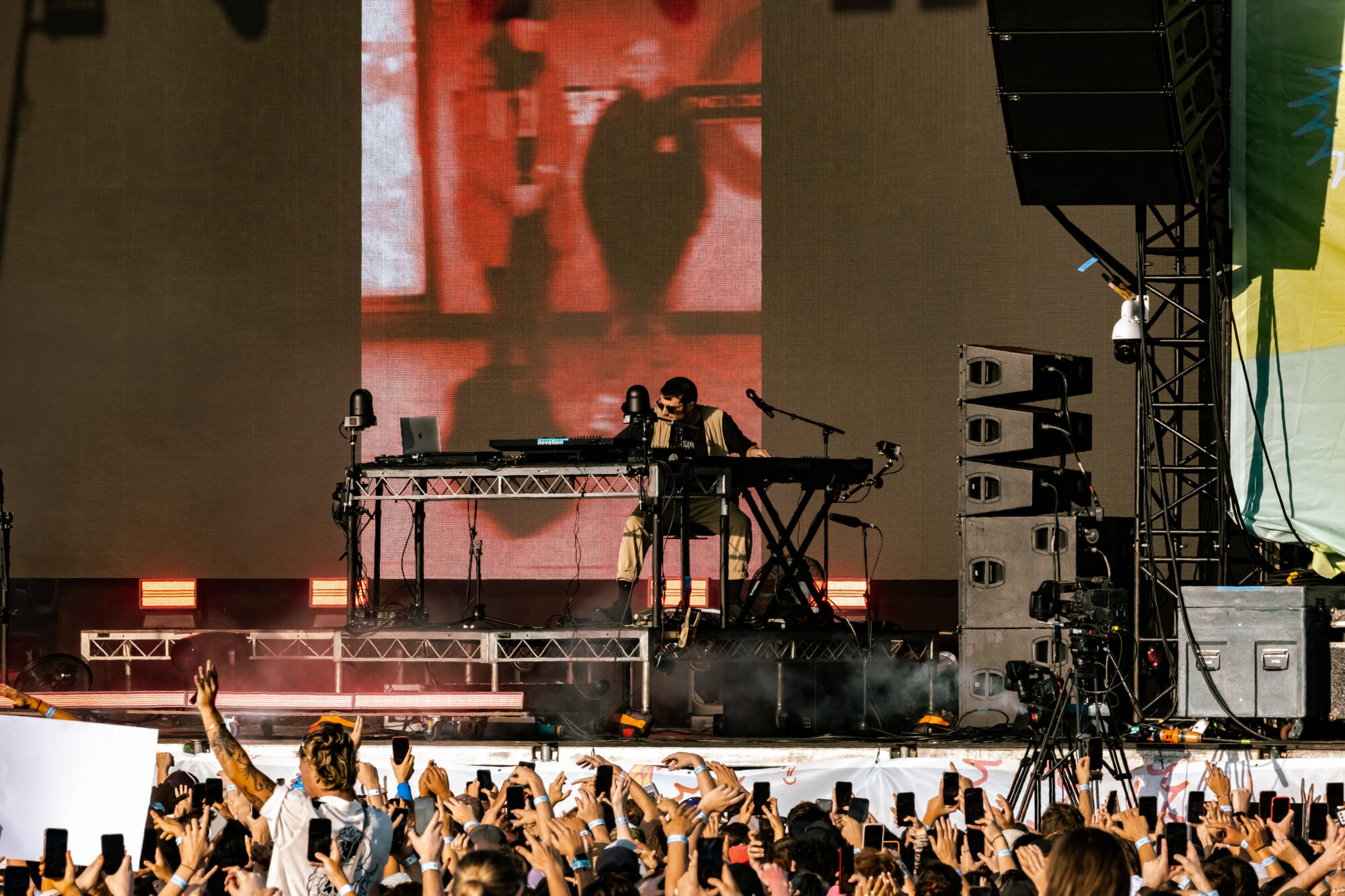 Raucous crowds are still a cornerstone of the festival with Norway’s Girl In Red crowd surfing over profanities, and in defiance of the relentless heat we finally see people moshing. Daylight savings betrays Fred Again.. tonally, it doesn’t feel quite right that he is playing in full blown sunshine. Still, his tour of down under has cemented him within the EDM zeitgeist – sold out shows and complete chaos trying to get tickets to secret after parties meant regardless of the time-slot he drew an enormous crowd. Having seen him in a slightly more appropriate setting it does feel like a shame that the diaristic elements of his performance get lost in the atmosphere.