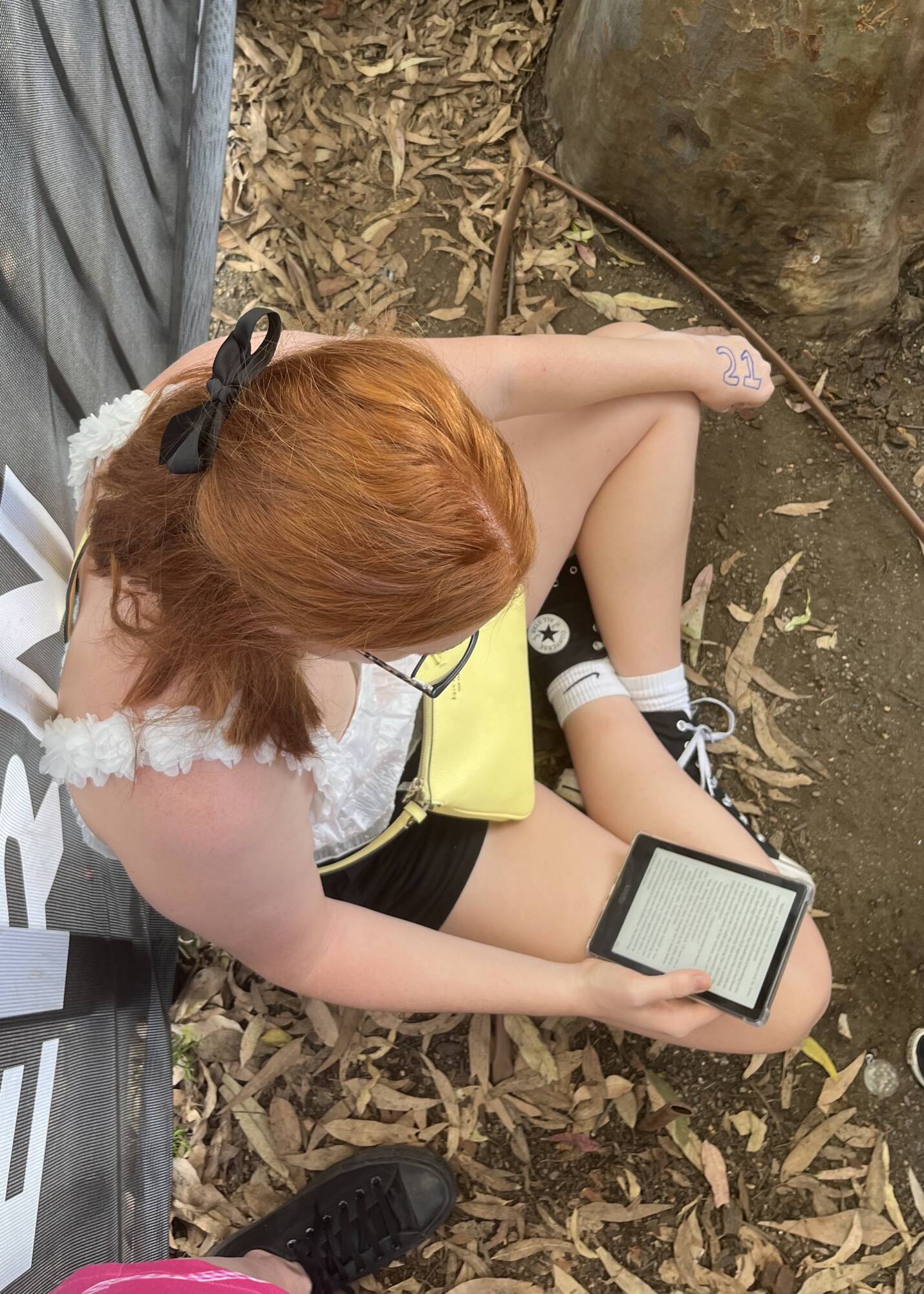 Setting up camp under a copse of trees and huddling beneath our umbrellas, my friend handed me an airpod and we began intently reading the books we had crammed into our tiny bags for the wait. Around us, fellow concert-goers well-versed in the Taylor Swift tradition (like us) made Abrams-themed friendship bracelets and wrote ‘21’ on their hands in sharpie – the number that also forms the name of a popular Abrams’ track. Music blared from a nearby speaker – everything from Abrams to Swift, Olivia Rodrigo and Sabrina Carpenter – unsurprisingly all of us knew the lyrics by heart. The venue staff walked along the queue with trays of orange slices, garbage bags and sunscreen as the queue grew and our snacks dwindled (or in the case of our chocolate, melted). Every few hours I reapplied my fading red lipstick, questioning why I even put it on this early. My friend laughed, asking why I kept reapplying it just for it to fade again. Behind us, a teenage girl sitting in the queue with her friendly, talkative Dad explained to a woman visiting them that the bows we were all wearing were “a thing”. Another young fan handed out red paper hearts for each of us to hold over our camera light during Abrams’ performance of ‘Amelie’ to cast a red glow across the stadium. Another fan cajoled those waiting in the queue to stand up and sign the Australian flag as a gift to Abrams.