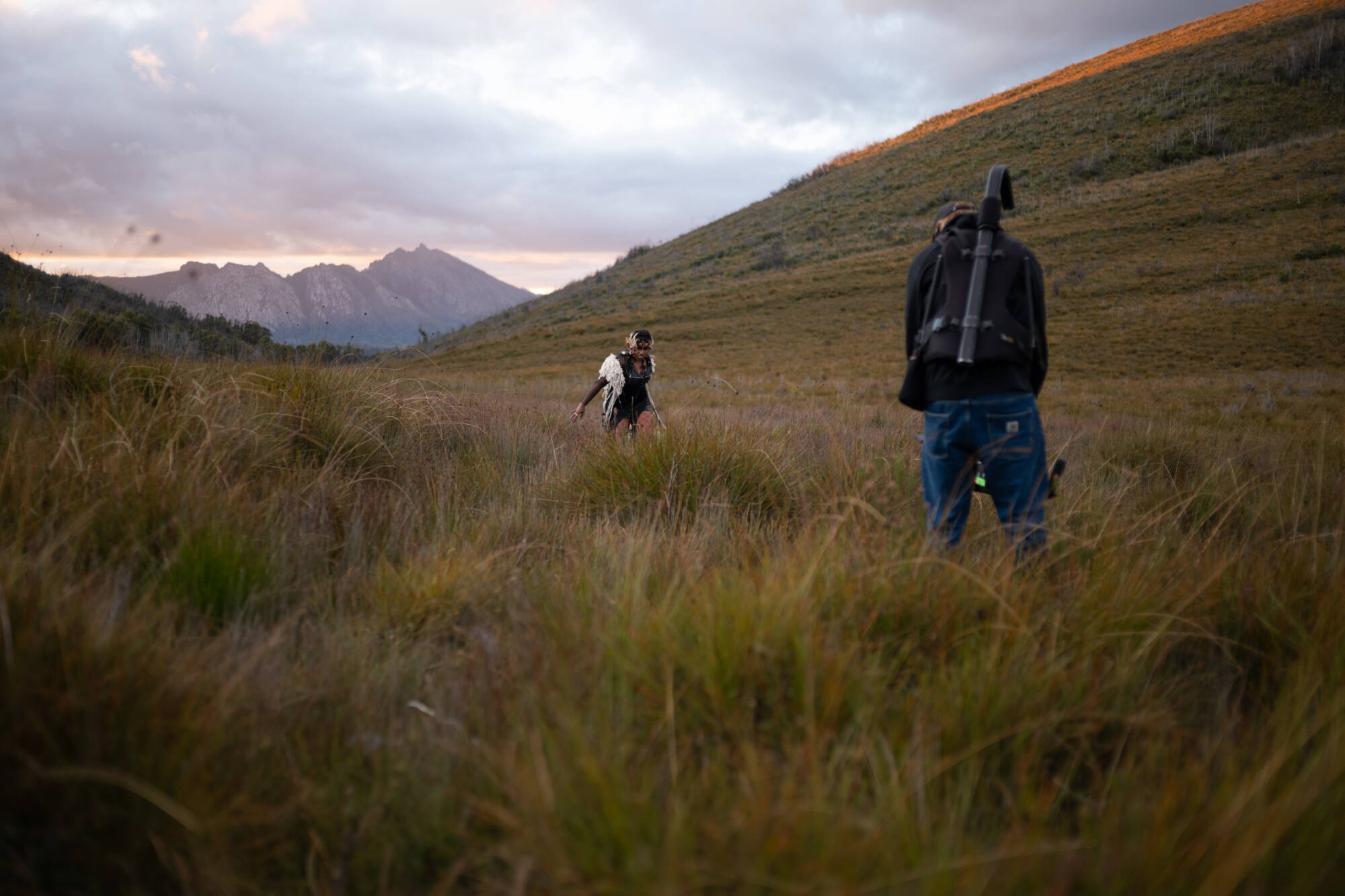 Filming in Lutruwita was magic. The land played as big a character as all the others on screen. Em’s family and community featured both behind and in front of camera. For me this was an intentionally holistic approach to making the video. I wanted to give Em a very meaningful experience and safe space for us to just play and have fun.