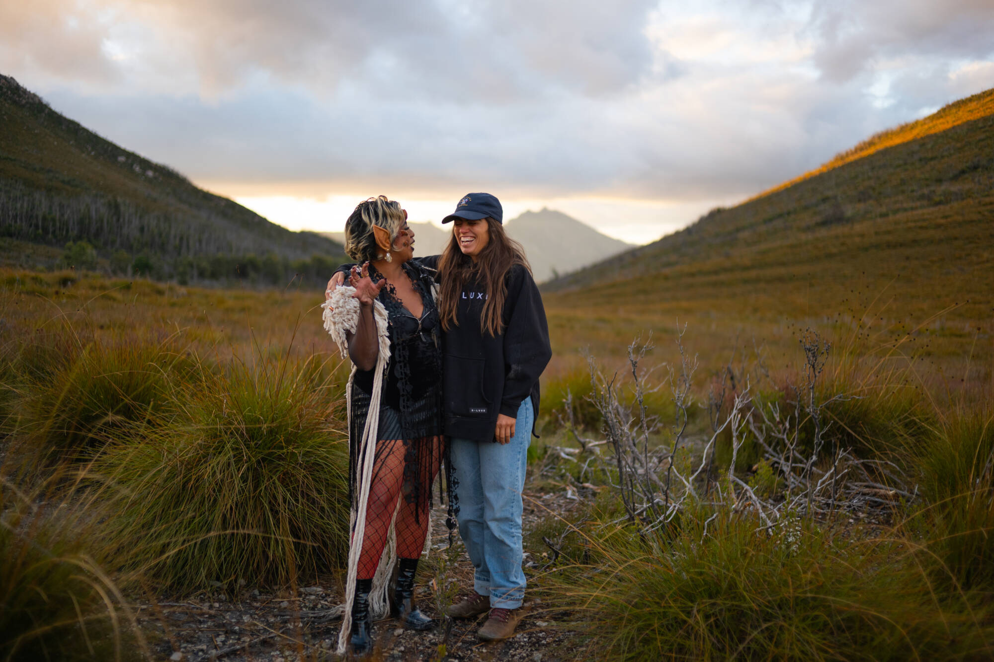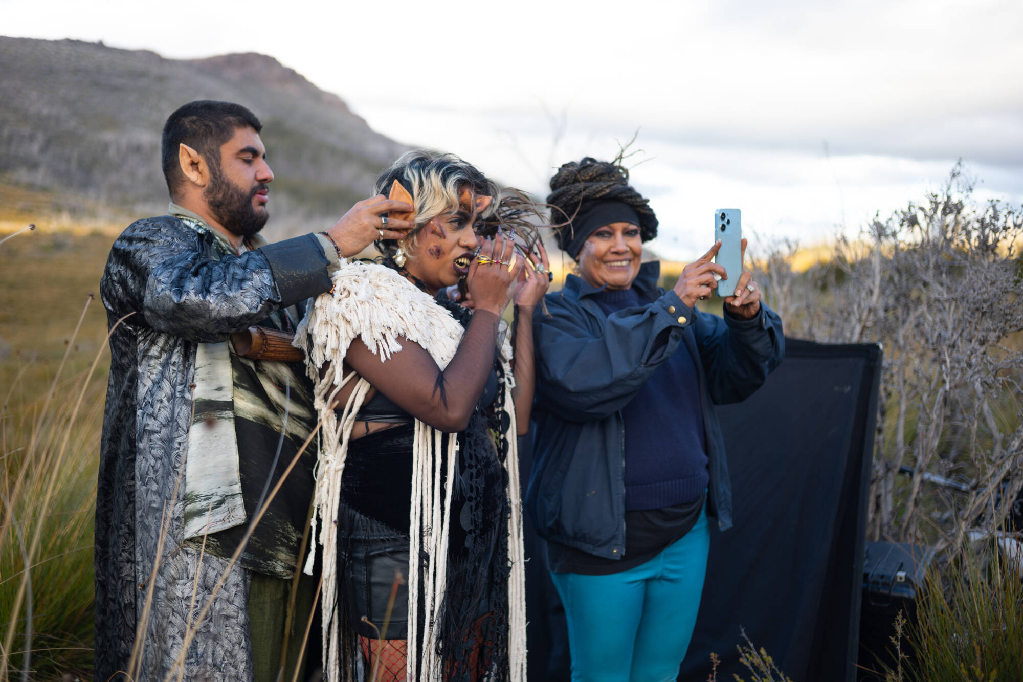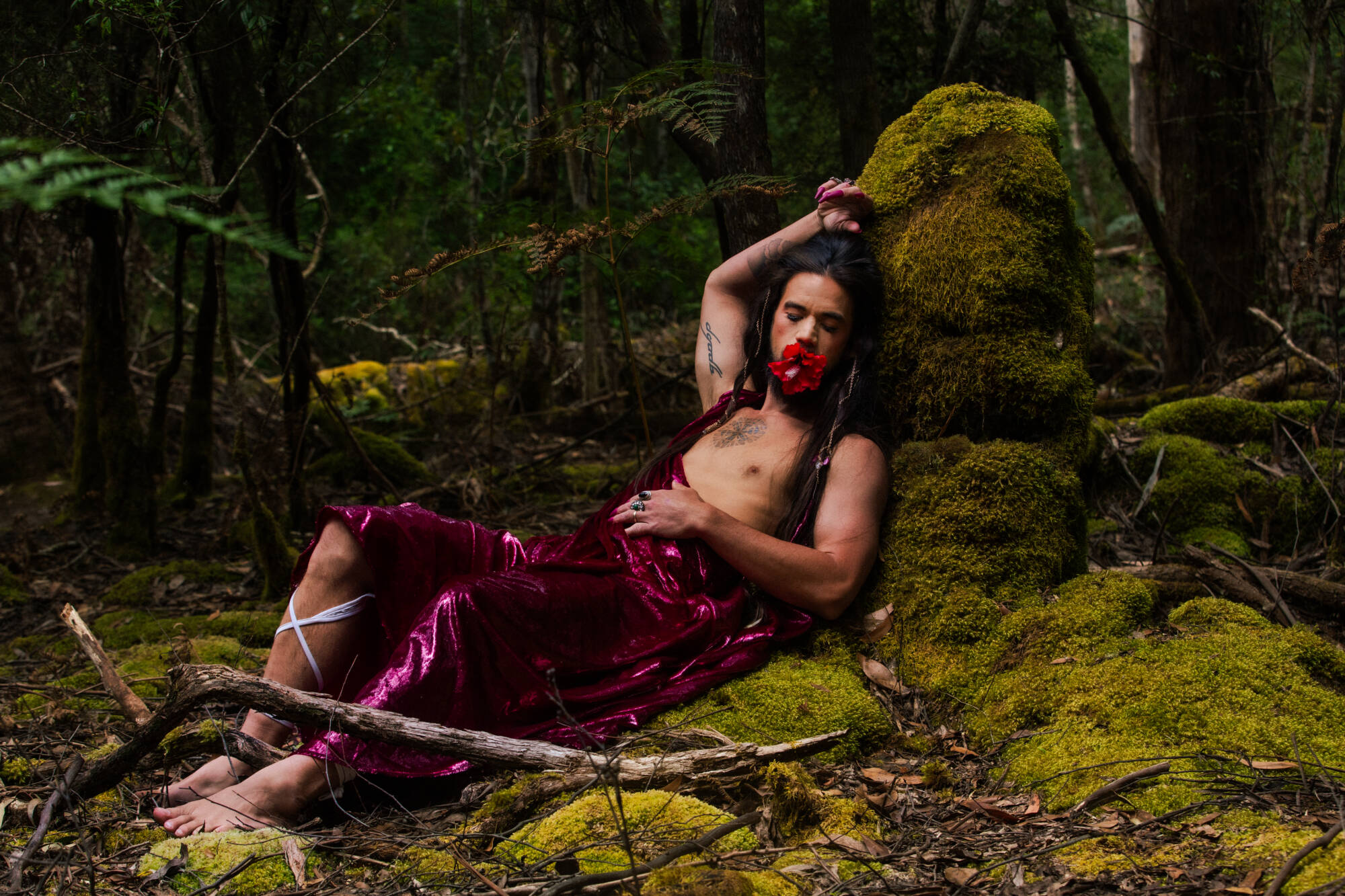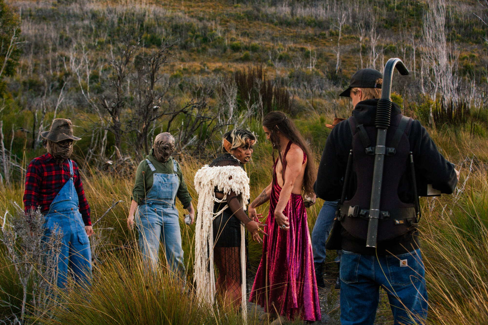 “While filming, we stopped at a petrol station to grab some snacks and I remember seeing people’s faces as I walked in, I had the ears still on and some of the prosthetics too, the guy behind the desk was so shocked. I remember this lady had shuffled to the counter to quickly buy her things and leave. I feel like Lutruwita is strange and beautifully weird, it was at that moment I kinda felt like I finally belonged to that yummy weirdness. It was insane, obviously people were shook – I think that’s what makes it fun about it all though, they’re costumes. You can do so much with it.”