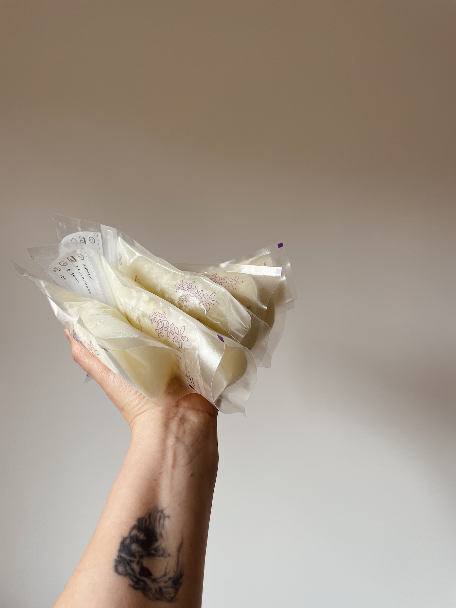 It’s 3am, I swing my legs off the bed, momentarily distracted by the crumbs I can see on the carpet – the moonlight through the gap in the curtain highlighting the chocolaty fragments. Alba whines again and I hoist my body out of bed, dragging my tired bones down the hallway to the kitchen where the pantry light greets me. I put the kettle on and open the fridge, the blinding light unforgiving. I pour milk from a little bag into Alba’s bottle, one of many perfect packages donated by a local mum and gratefully, tearfully received by me when breastfeeding failed. A chest freezer was bought in a frenzy when multiple mums enthusiastically offered us their milk: