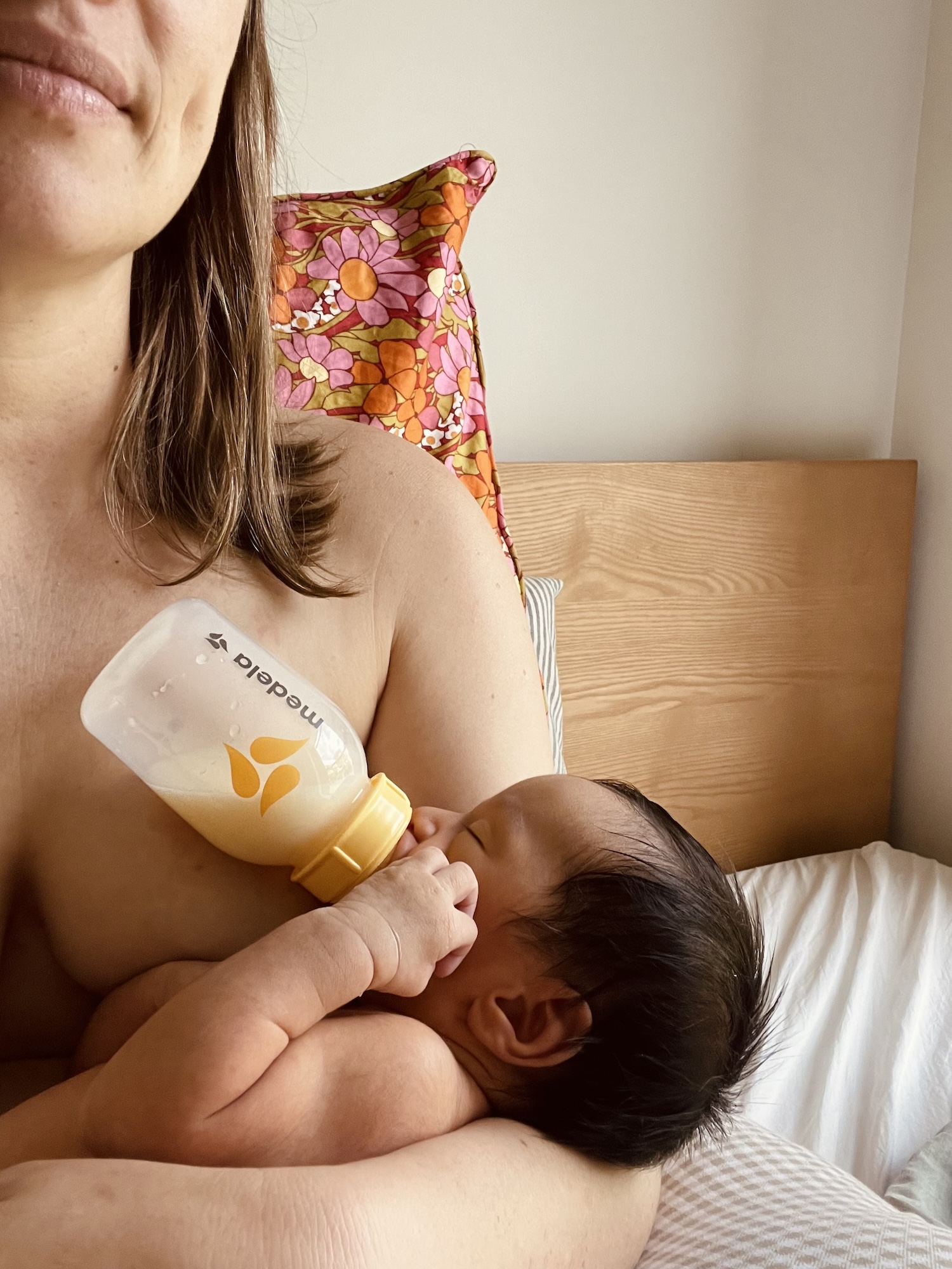 I had been expressing colostrum, an act I would be very grateful for later when low milk supply and a latching issue meant anything extra was crucial. We asked the midwife to store the liquid gold and she happily grabbed our stash for the freezer.