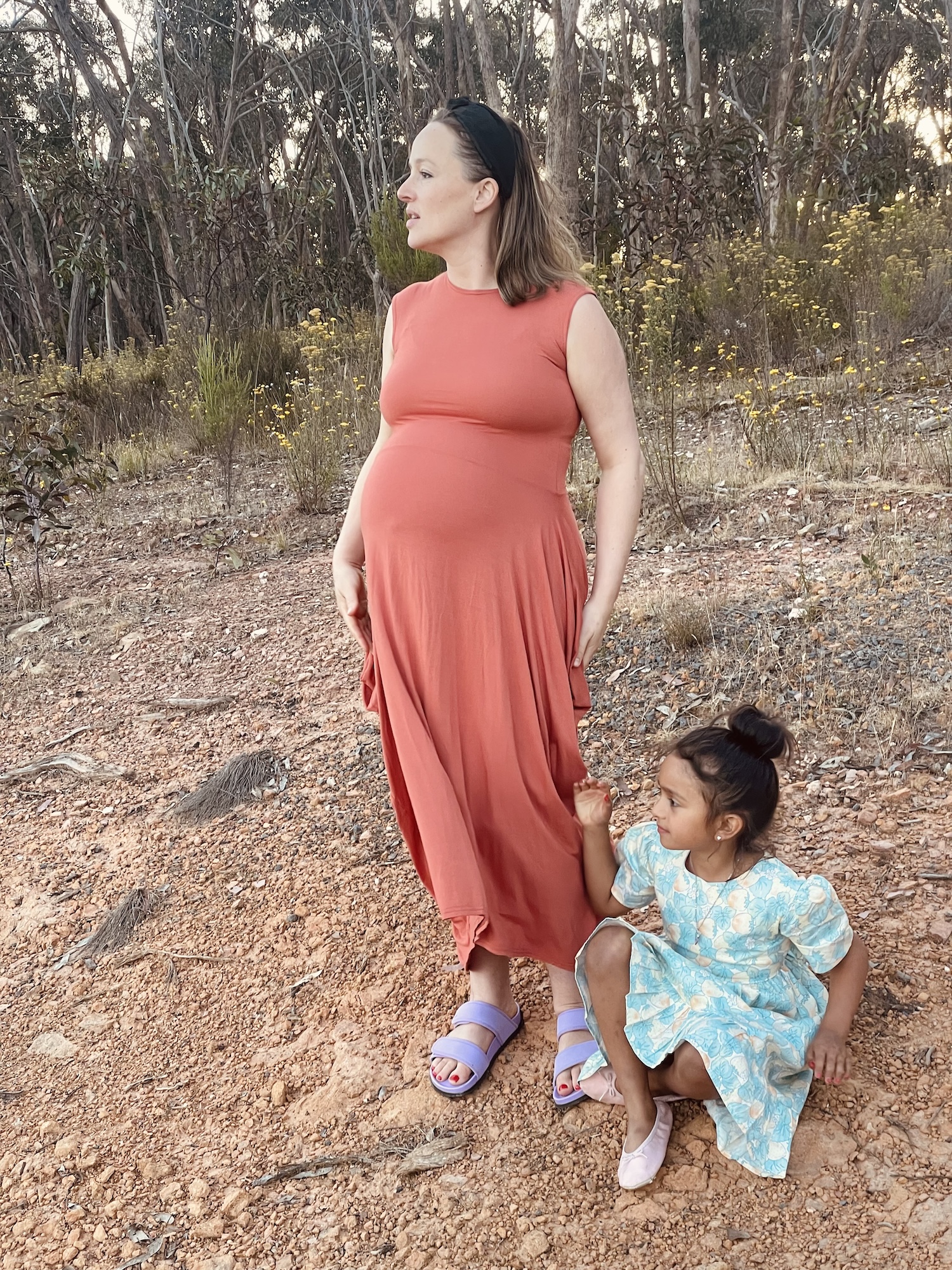 The sun was just starting to get that sting to it and my daily walks up the hill, navigating the bull ants who share our neighbourhood, became a languid affair. Elizabeth was always in her garden, harvesting posies of pink and purple pea flowers for my six-year-old daughter and sharing words of encouragement on the impending arrival of the stranger in my belly. Despite the discomfort, I continued to move every day, my belly stretching in all directions, my lungs stubbornly fighting for space.