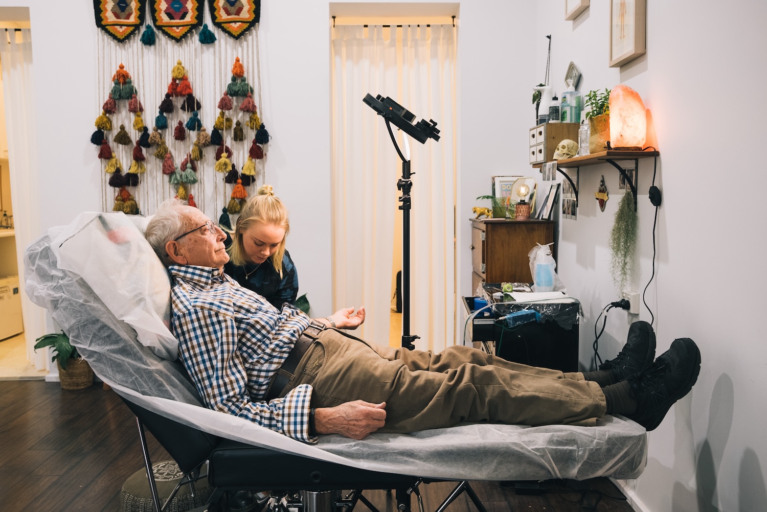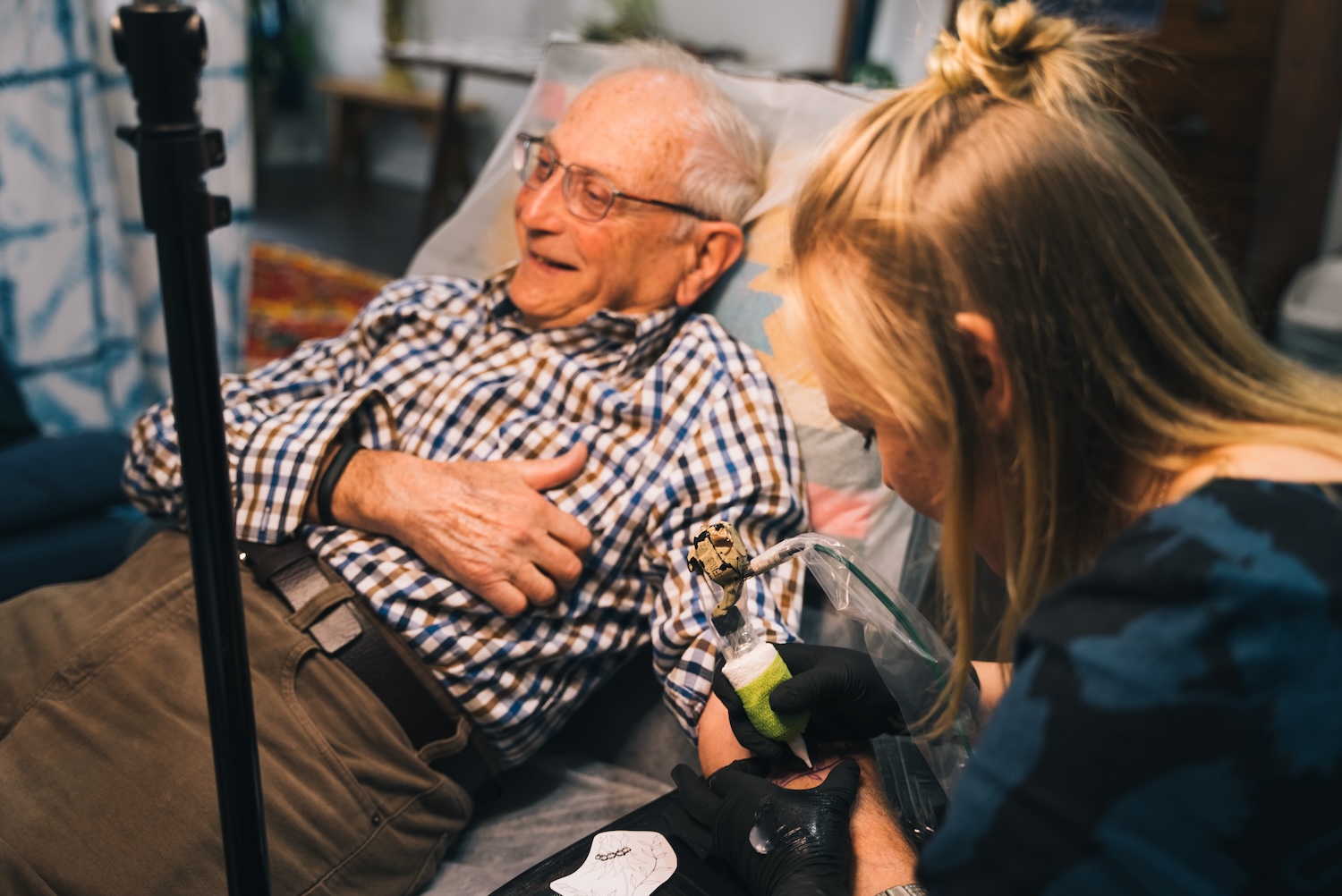I could never pick a favourite tattoo experience, but a standout has been a grandfather and his granddaughter getting matching tattoos of a Sturt’s Desert Pea. It was his first ever tattoo at the age of 90 and I felt so honoured to be there for that experience that they both shared together.