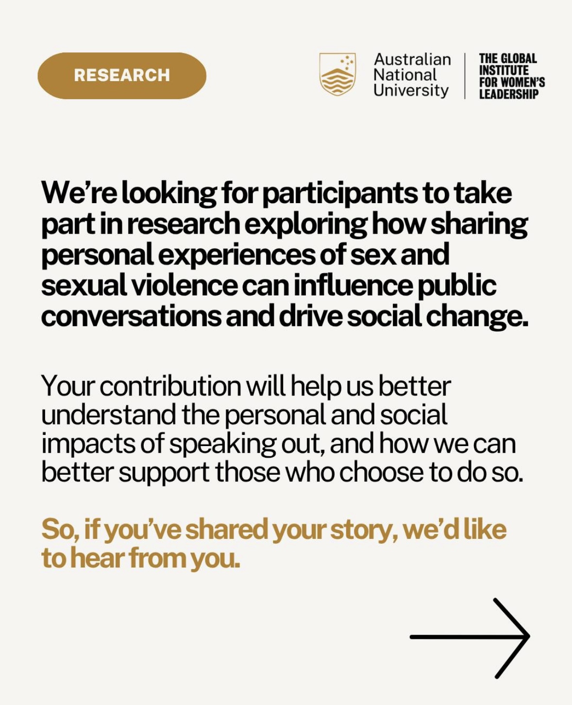 A new research project conducted by researchers at the Australian National University is seeking to understand what it means to speak out about sexual experiences in today’s world and how people reflect on that process over time. This includes looking at the different ways stories are shared and the range of experiences people have when they do so. Each act of giving testimony brings different experiences and consequences.