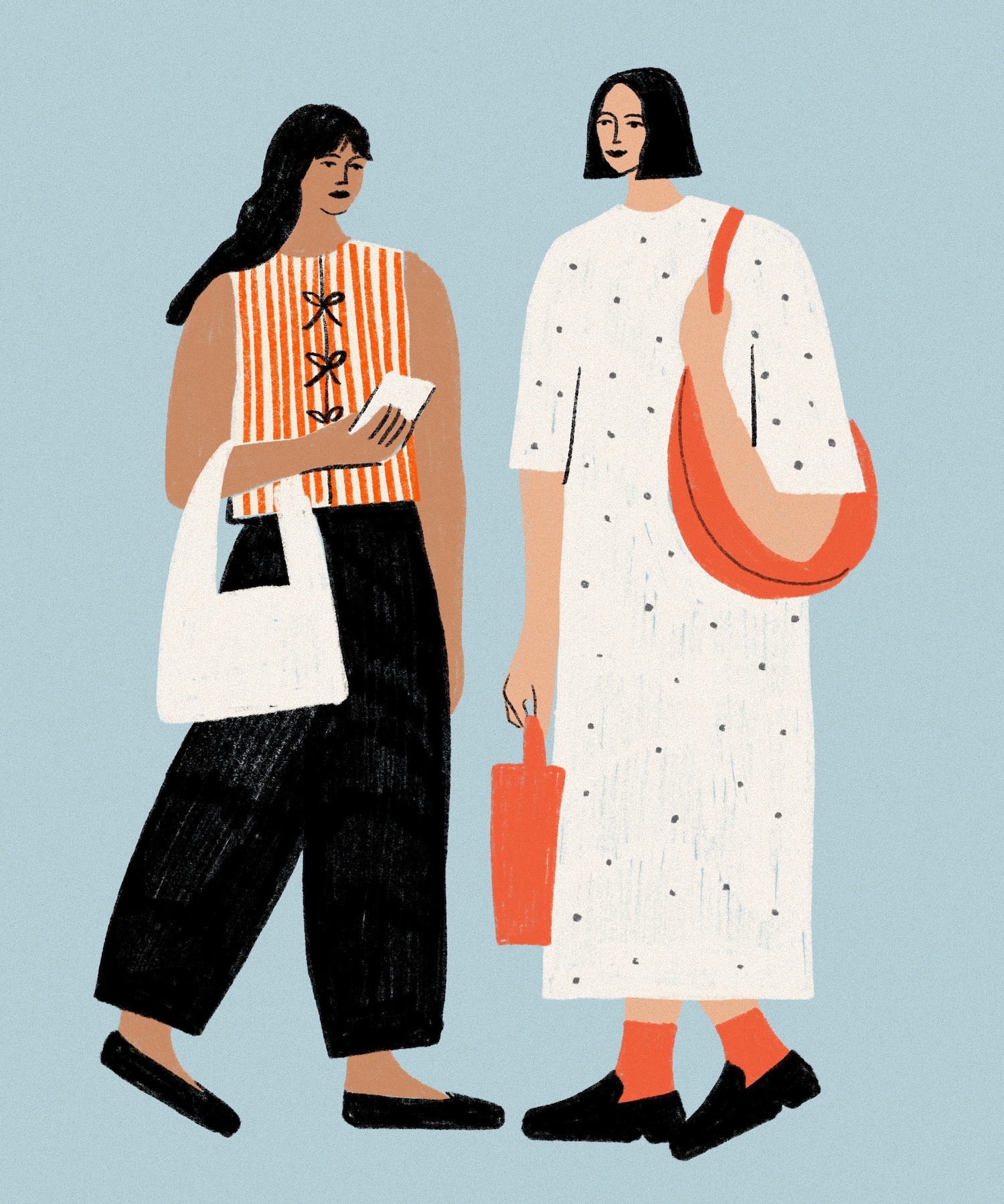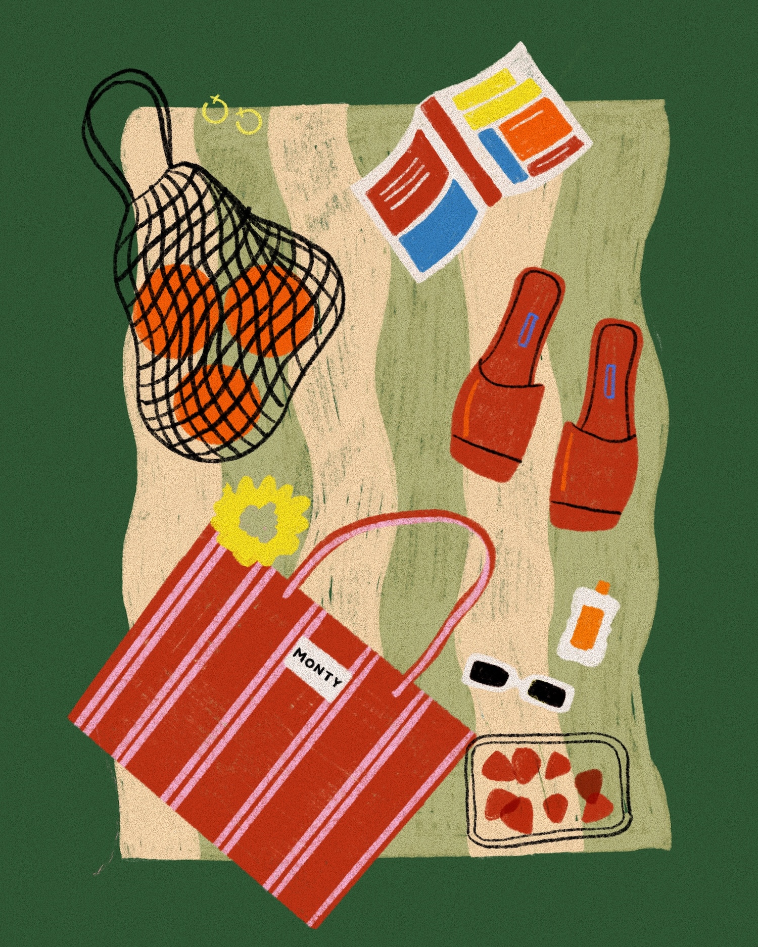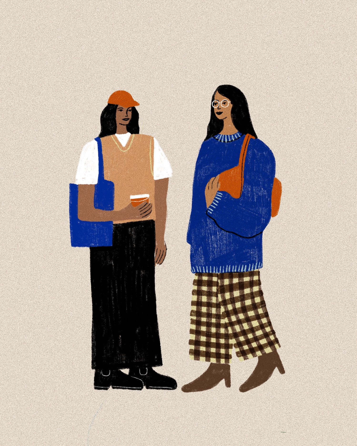 Philippa Coules is a British illustrator whose vibrant and joyful work captures the charm of everyday life—fashion, food, people, and playful moments—through bold colour and cosy textures. Based in Oxfordshire, she creates most of her art digitally, drawing inspiration from retro design, nature, and the world around her (often with her daughter by her side). I chatted to her about her process, inspiration and environment.
