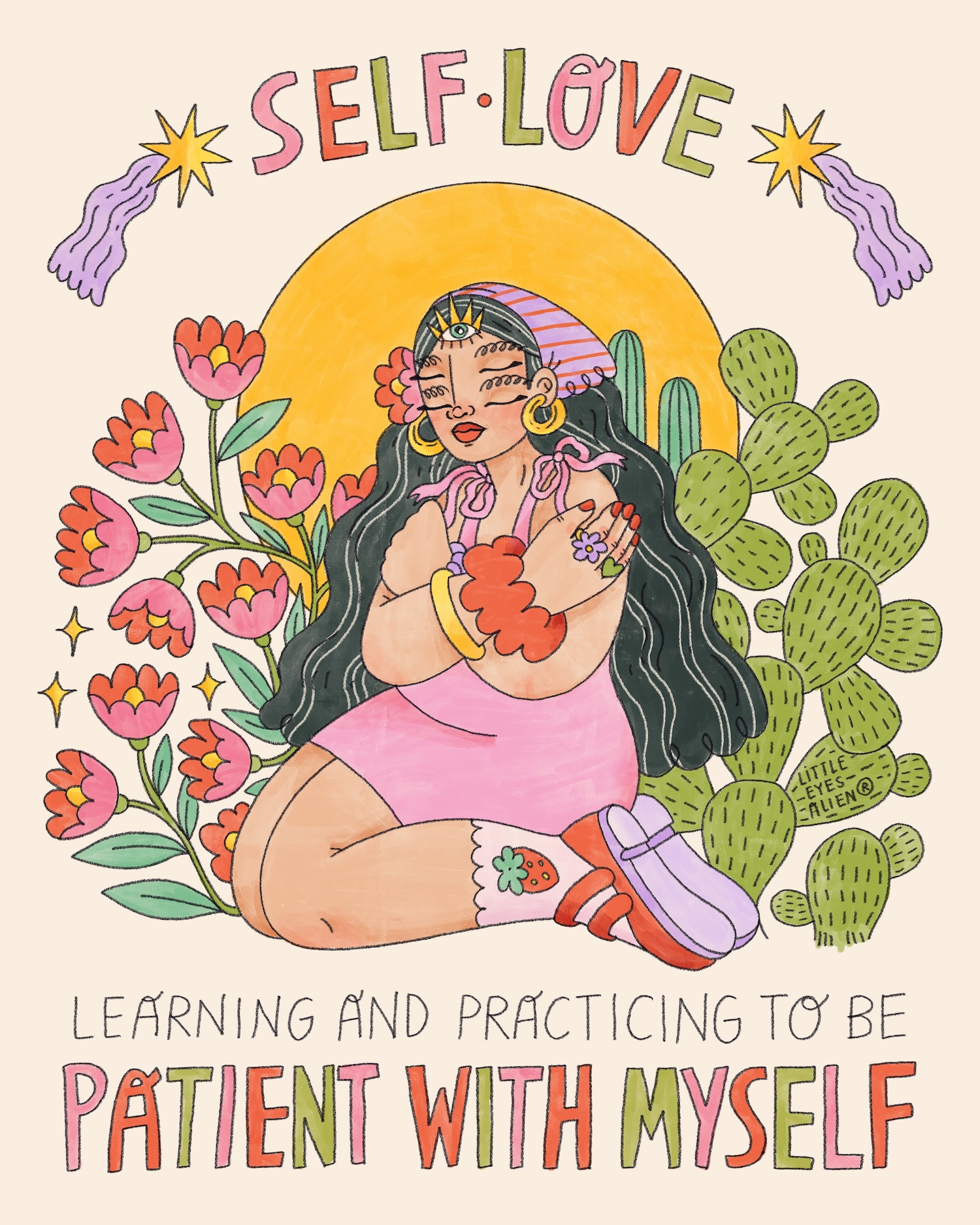 I love creating illustrations that feel like a home or a safe space, validating our emotions, celebrating our real beauty—without filters—our imperfections, resilience, celebrating love, respect, and empowering ourselves.