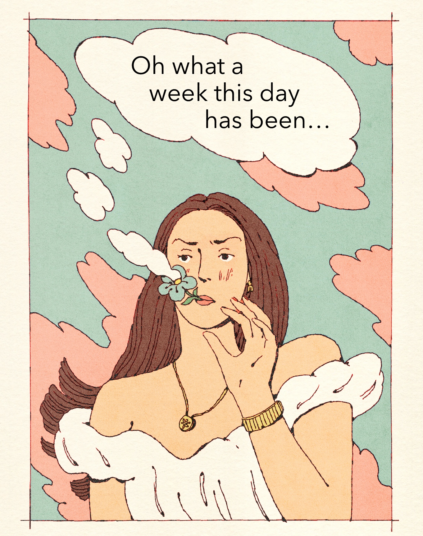 Your work combines analog pen with digital colors to create soft, human-centered narratives. Can you walk us through your typical creative process from concept to completion?