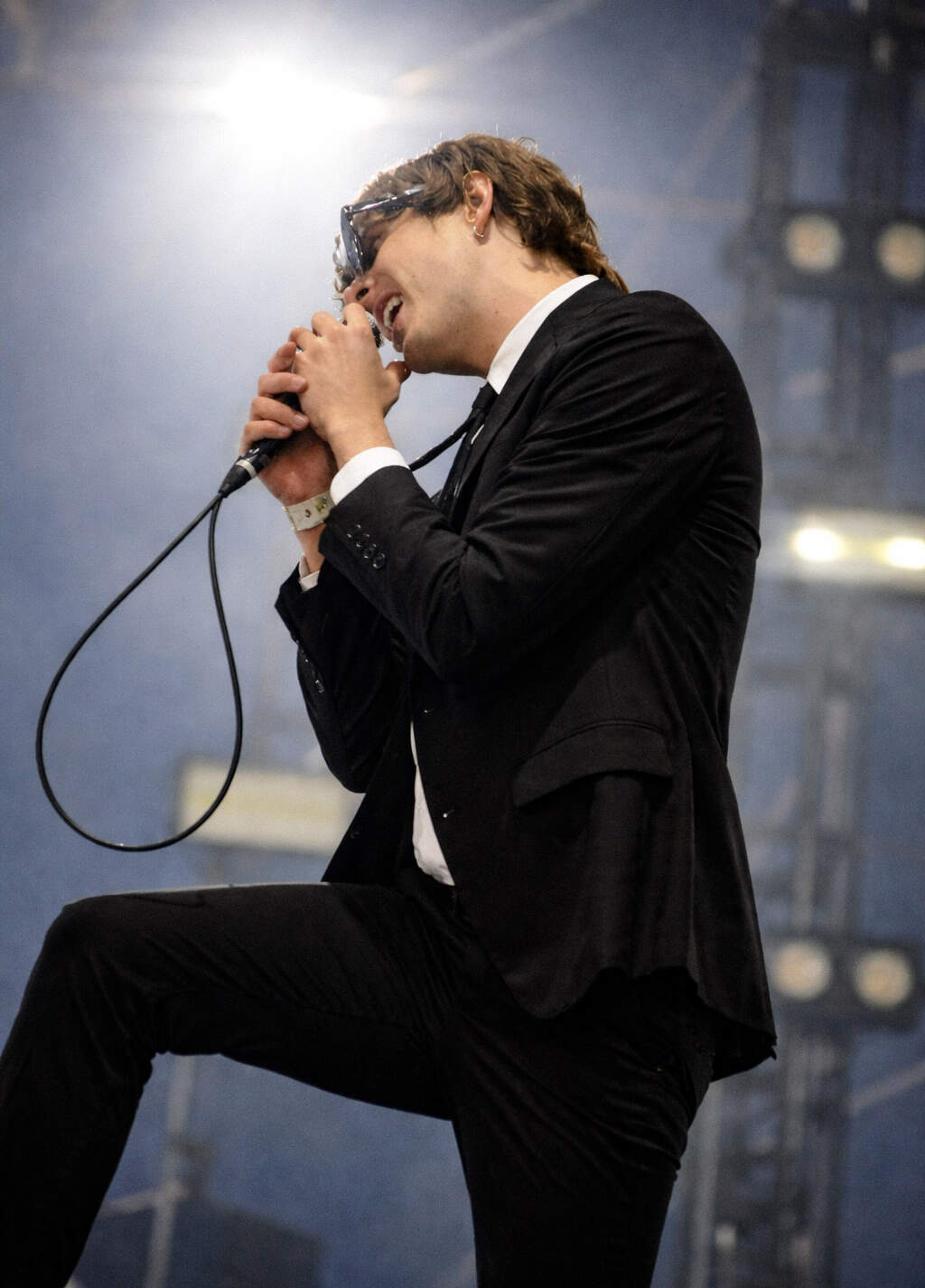 He tore across the stage, limbs loose, hair falling forward, strobing LEDs catching on his silver hoop earring, the kind that evokes a yearning similar to Paul Mescal’s hoop in Hamnet or Jacob Elordi’s in Wuthering Heights.
