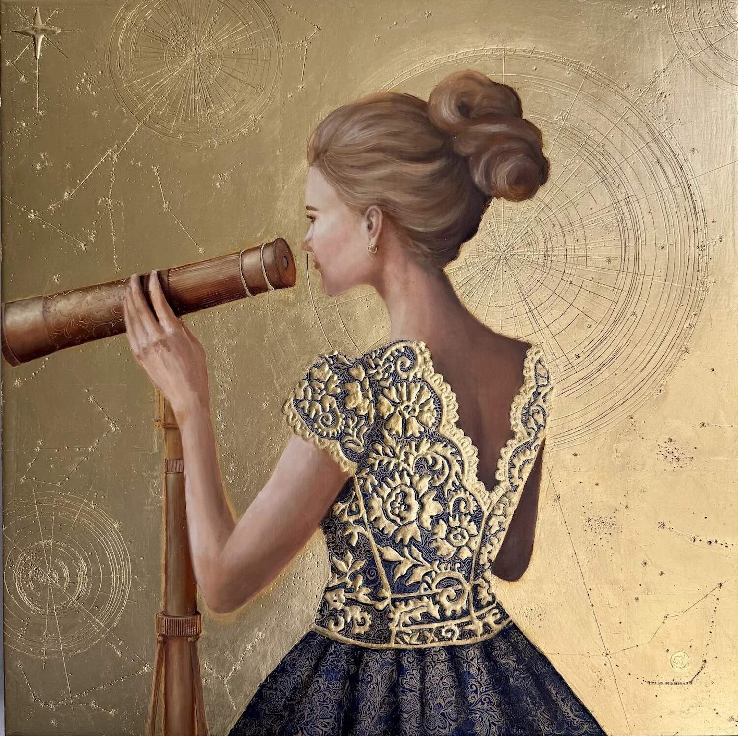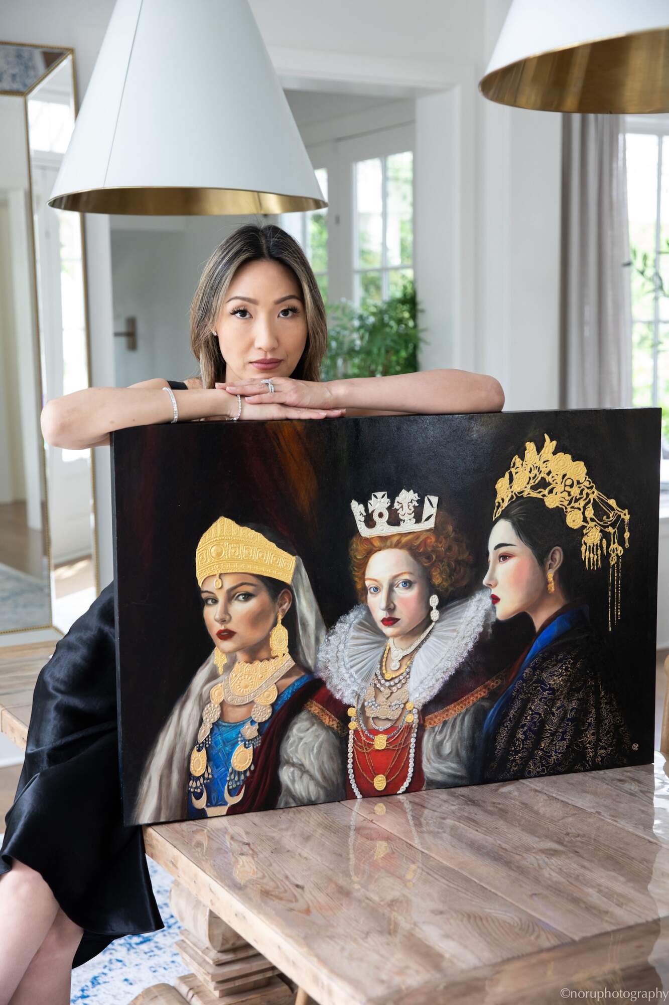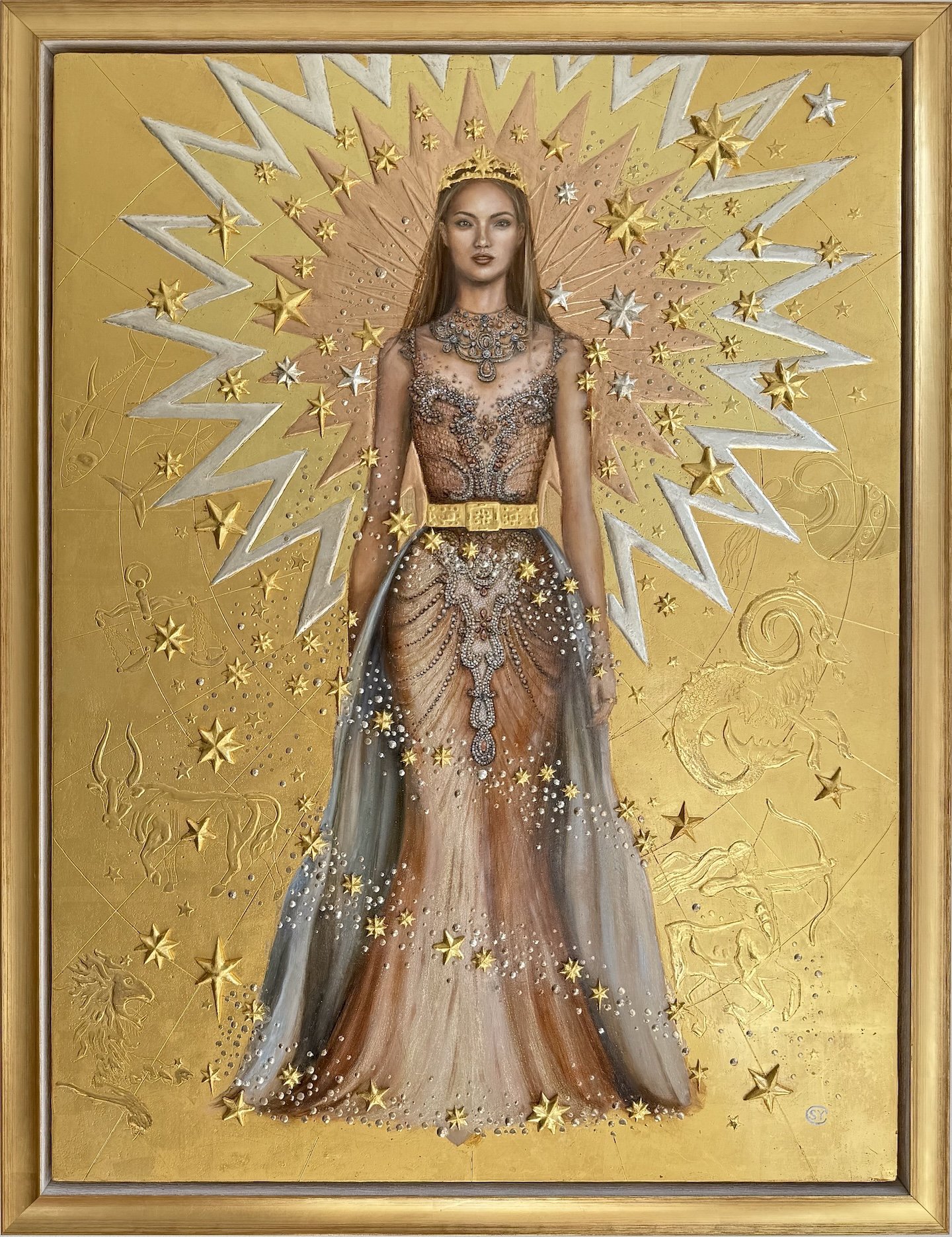 My work is rooted in a desire to portray women with a sense of reverence that has historically been reserved for kings and saints. I use Renaissance water gilding techniques with 24K gold leaf and oil on panel, an intentionally meticulous process that requires time, precision, and care. The gold is not just decorative, it carries meaning. It reflects light in a way that feels sacred and becomes a visual language for honoring the strength, complexity, and inner life of the women I paint. I’m drawn to women who have built, led, and shaped the world in their own way, and my intention is always to capture not just how they are seen, but who they are beneath that.